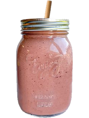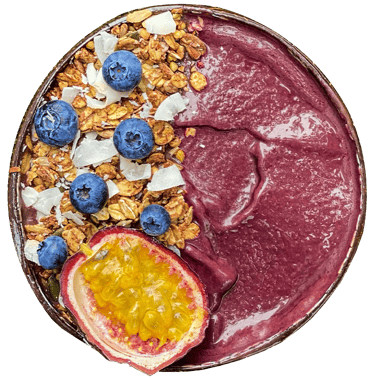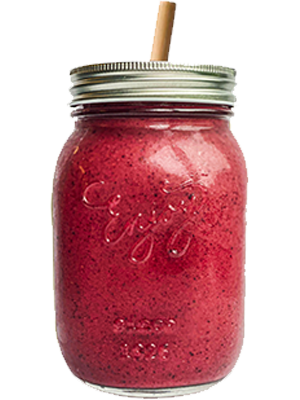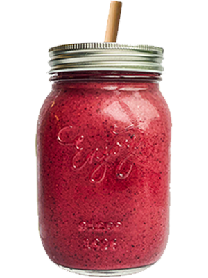 Ingrediënten: blauwe bessen, braam, acai, baobab, banaan, dadel, hennepproteïne, aardbei