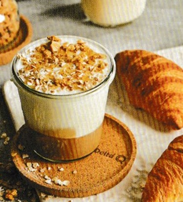 Ingrediënten: Koffie, Amandel of Haver melk , Haver en Muesli, Honing