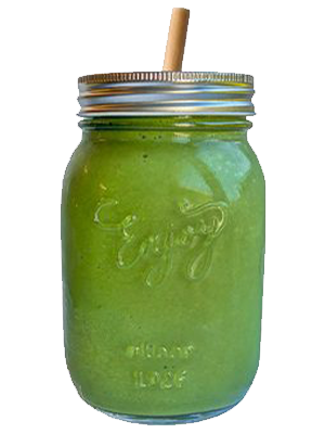 Ingrediënten: vijg, avocado, limoen, mango, amandel, banaan, boerenkool, munt, peterselie, dadel, erwtenproteïne, spirulina, tarwegras