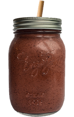 Ingrediënten: raw chocolade, avocado, maca, pinda, koffiebonen, blauwe bes, banaan, guarana, erwtenproteïne, dadel, lijnzaad